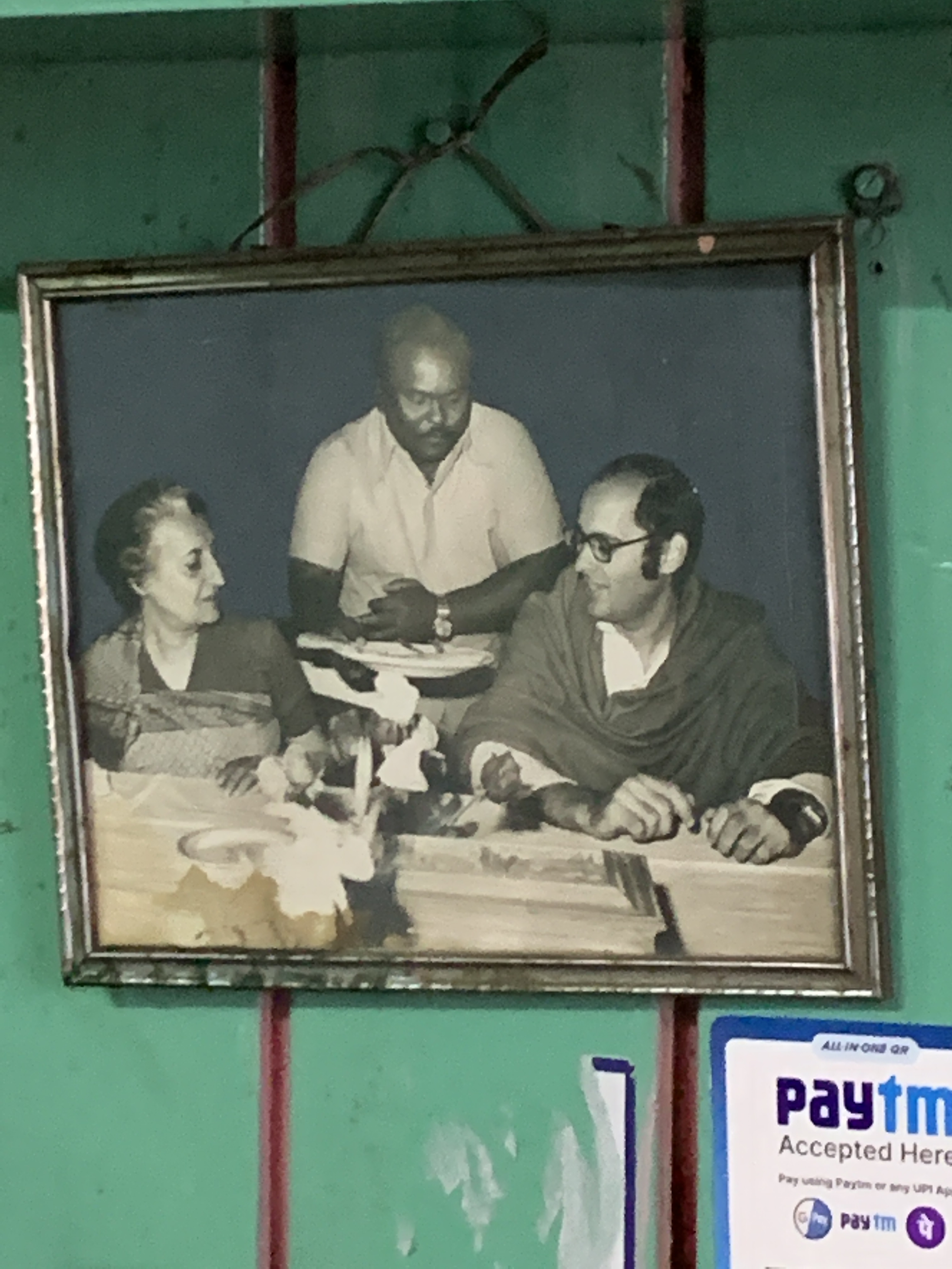 The interiors are basic with wooden benches and wooden tables with stone top. The green paneled walls adorn few paintings, pictures of God, advertisements, bookshelves, menu board and notices. There is this one picture which occupies the place of pride, just next to the cash counter where the owner sits. This black and white picture shows the owner serving Indira Gandhi and Sanjay Gandhi. Ask the owner, Deepak Shetty and he proudly says the person in the picture is his late father and that he was usually called for catering at the PM House in those days. A testimonial of the taste, I guess.